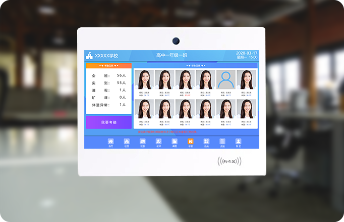 到了考勤時間點(diǎn),電子班牌自動開啟攝像頭進(jìn)行人臉識別工作,記錄全班考勤人數(shù),
