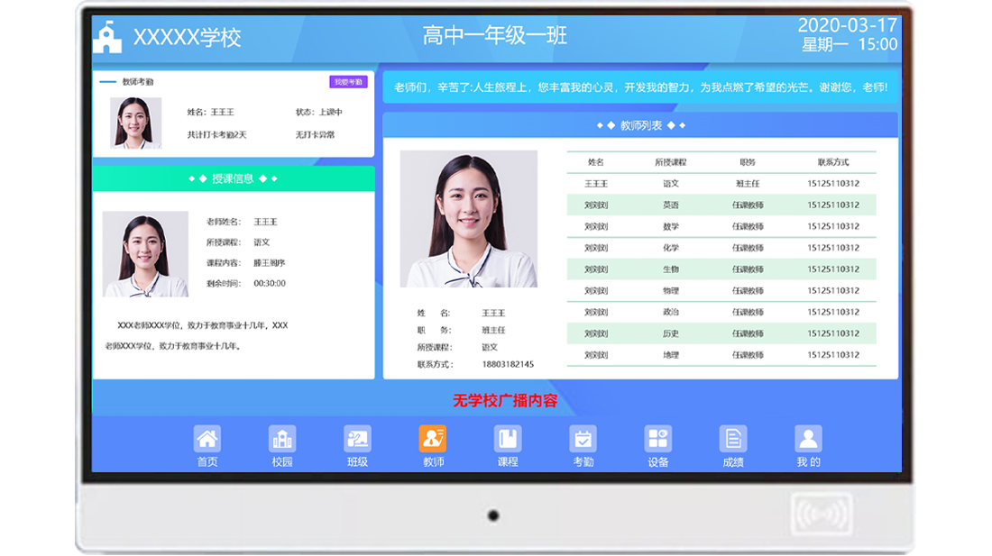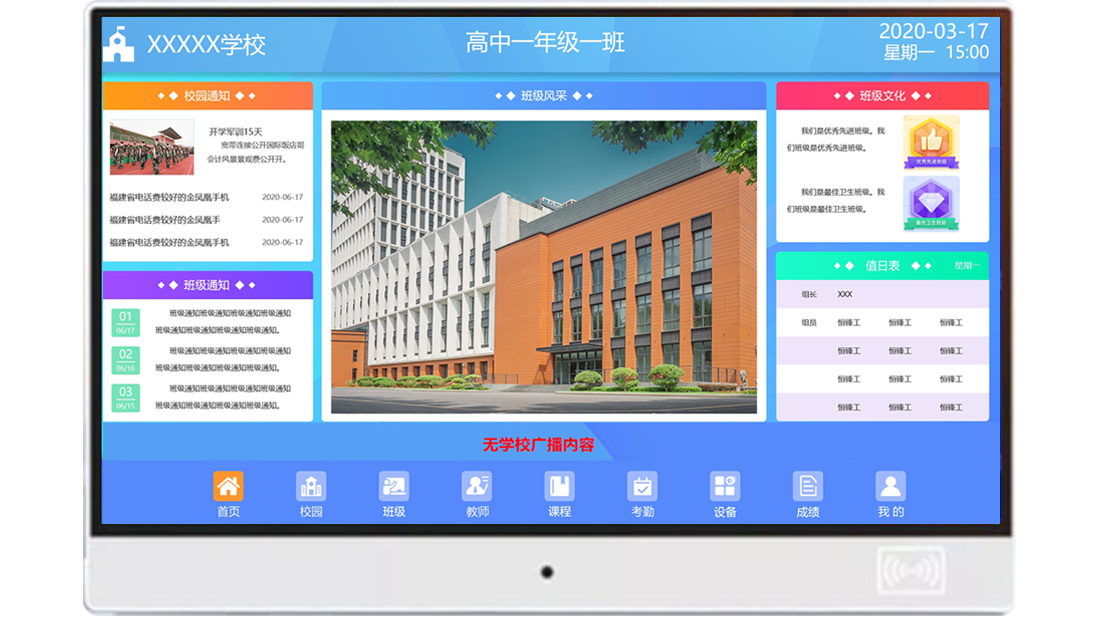 對所在班級的課程安排以及學(xué)校的作息時間的展示,讓師生合理安排時間,增強(qiáng)時間觀念。